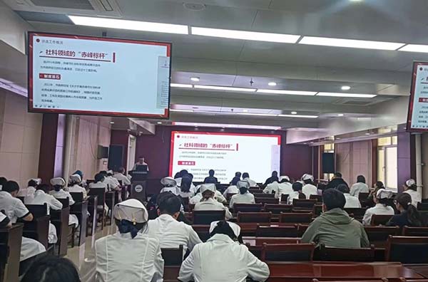 为切实提升医务人员科研创新能力,以高质量科研成果助推学科建设迈上新台阶,9月28日下午,我院专程邀请赤峰市社会科学联合会副主席赵光明一行莅临医院指导工作,期间围绕社科项目申报和社科奖励申报开展专题培训与交流活动。医院副院长孙会艳、科教科主任李明及各科室科研秘书共同参会。